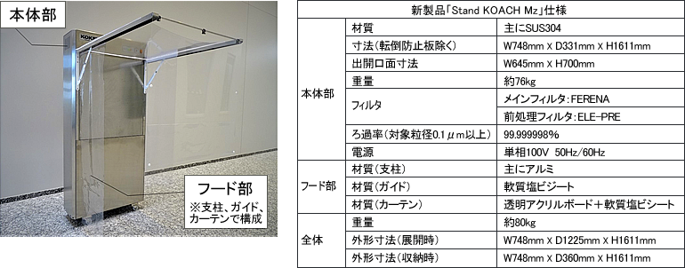 ISOクラス1(1㎥中に0.1㎛の粒子が10個以下)という極めて高い清浄度が求められる遺伝子・宇宙・半導体をはじめとした最先端の製造・研究現場で1000件を超す実績を有するオープンクリーンシステム「KOACH」をベースに生まれた「Stand